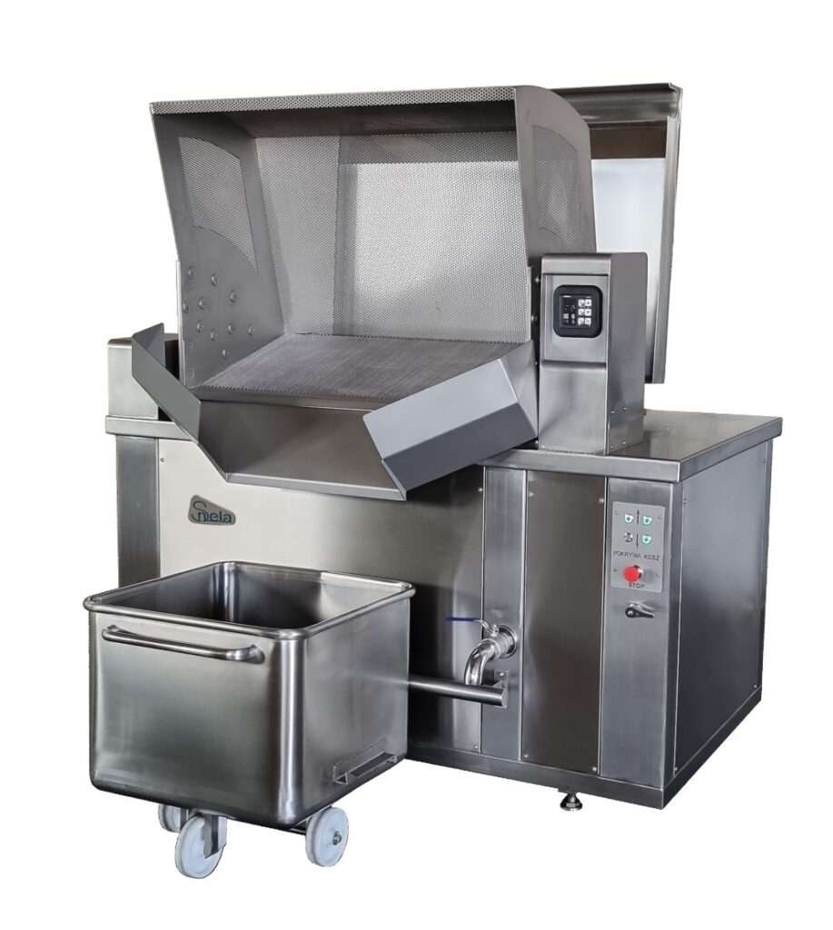 – zbiornik posiada wewnątrz ruchomy kosz, który poprzez hydrauliczny obrót wyładowuje produkt.